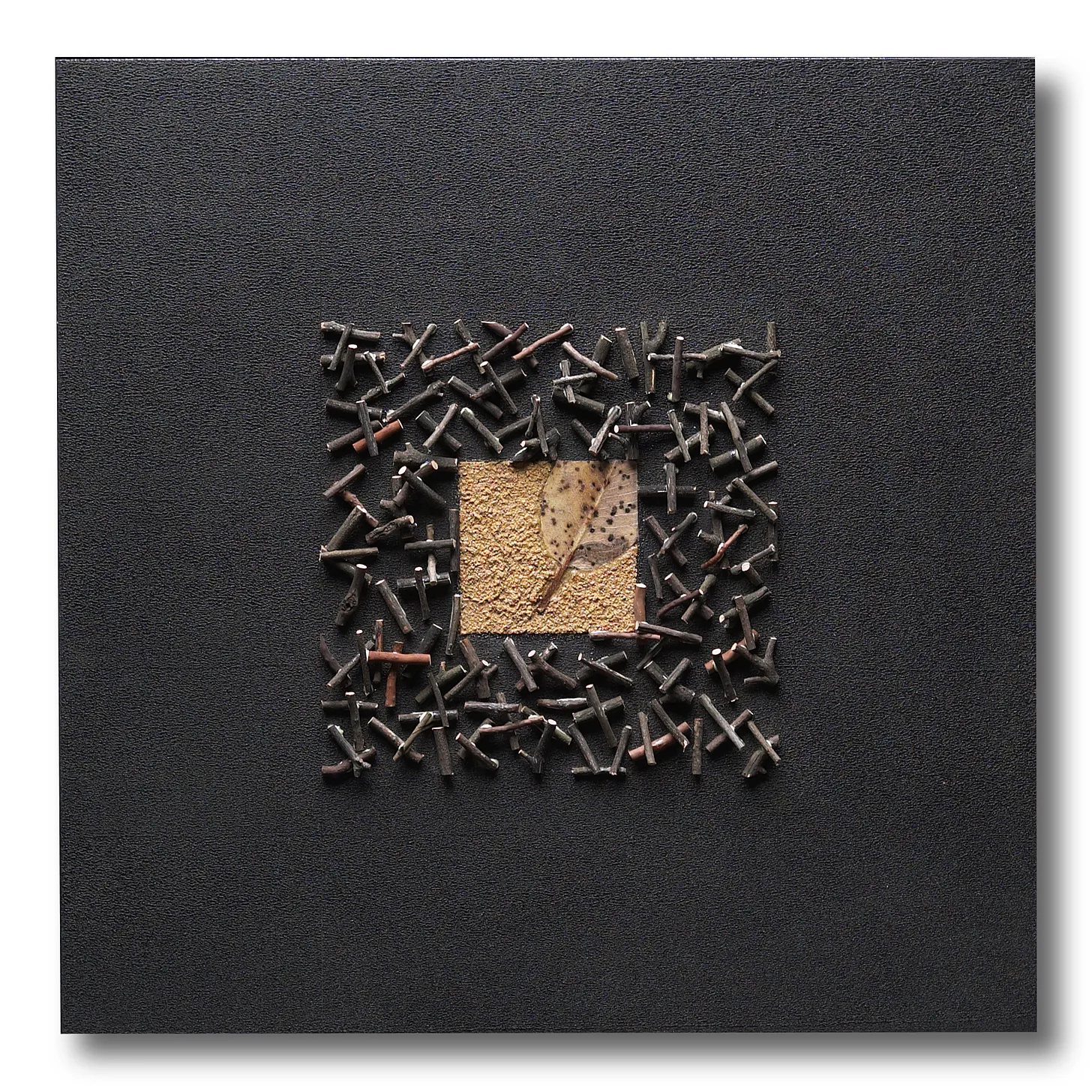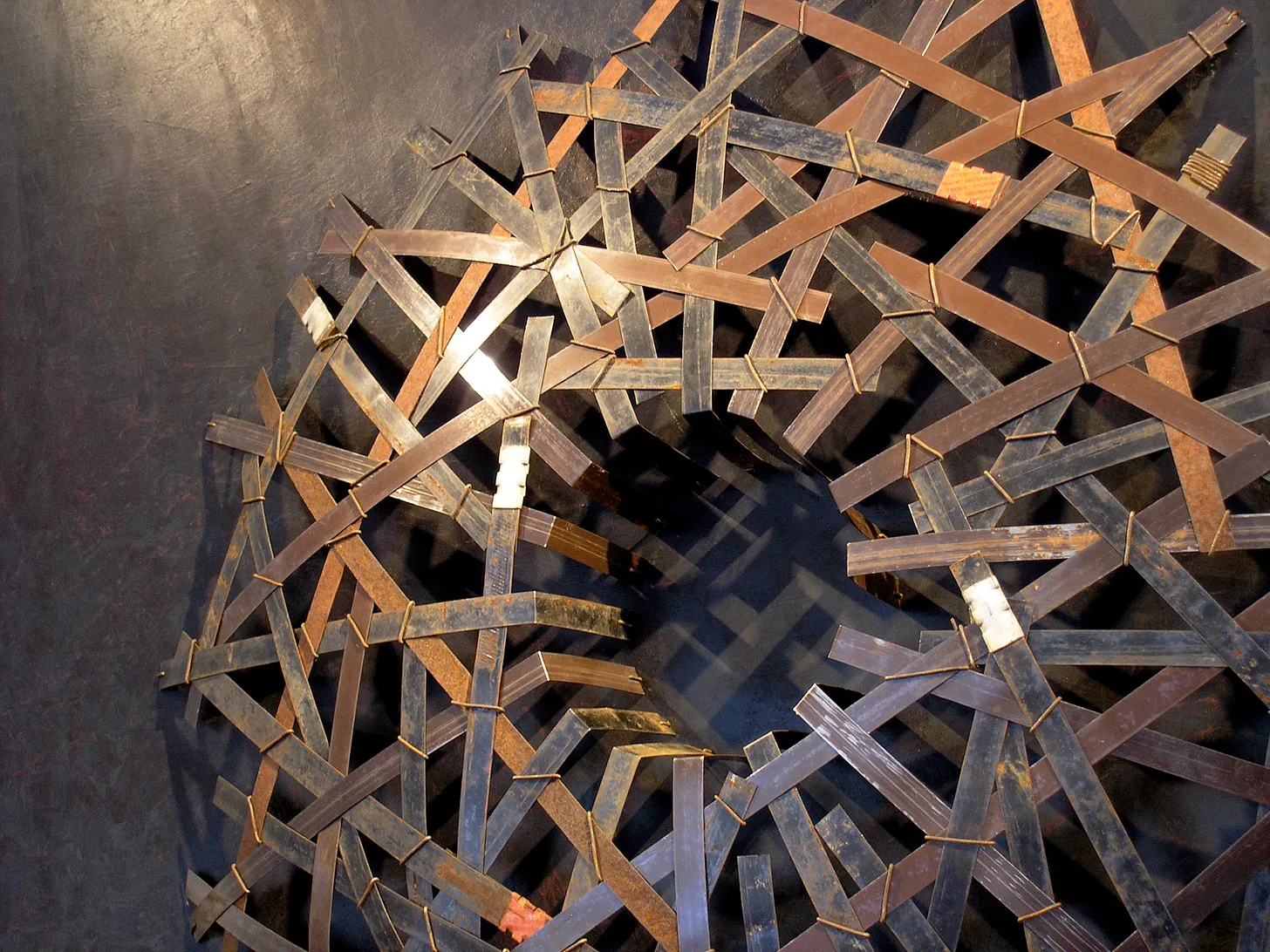 Meine Arbeiten kamen aus zwei Richtungen, die Industrielandschaft meiner Kindheit und der vom Bauhaus geprägte Minimalismus. Metallbänder von Baustellen neben gepressten Blättern. Rostiger Zaundraht neben Flusssteinen. Diese Spannung zwischen dem Industriellen und dem Organischen - das wurde der Kern.