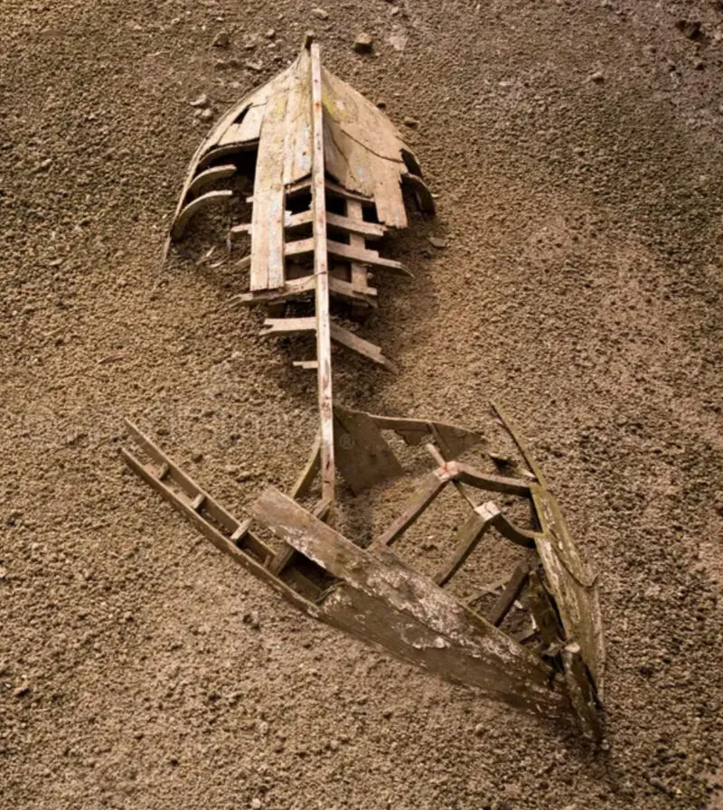 A working harbor shows you boats in every state. Some coming in with the catch, some being scraped and painted, some rotting in back lots. And some stripped down to their skeletons — the hull planking gone, only the keel and ribs remaining. A boat carcass looks like a fish carcass. Spine and bones, the structure laid bare.